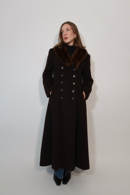 Fur Collared Cashmere Full-Length Coat in Mocha