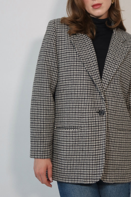 Wool Houndstooth Blazer in Black and White
