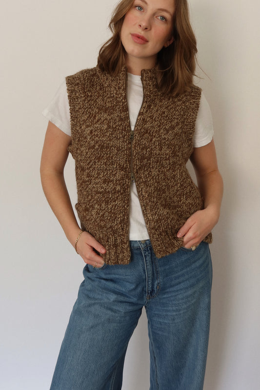 Sundance Alpaca Blend Zip Vest in Brown