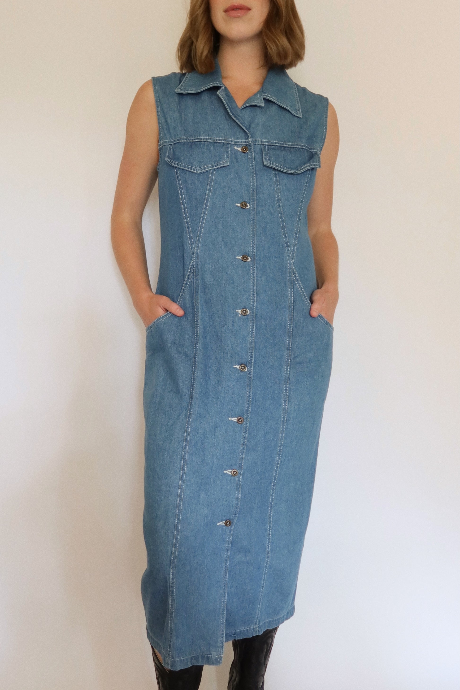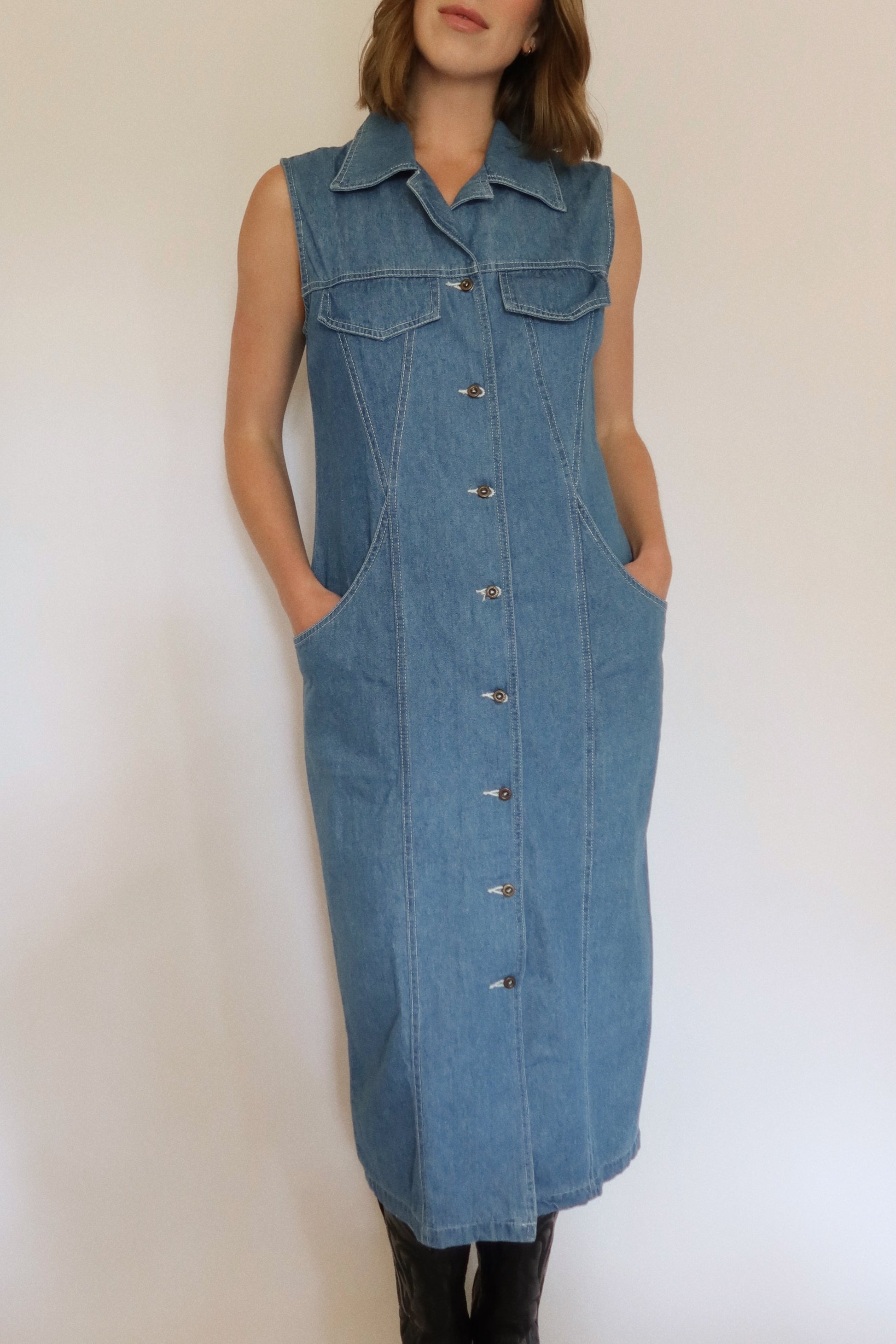 90s Western Cut Denim Dress
